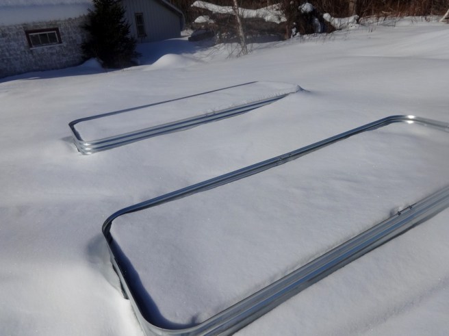 Greetings from my magnificent raised beds, each over a metre tall, the snow so deep and so hard-packed that I can stand on it and tower above them. Don’t even talk to me about the compost bins.