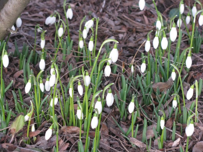 It’s about walking around your backyard or down the street and suddenly finding green things coming up out of just-last-week-hard-as-cement-earth—a tiny miracle, that. And every year I wonder how I missed the moment when the world turned from frozen dead to small perfect blossoms and tender shoots.