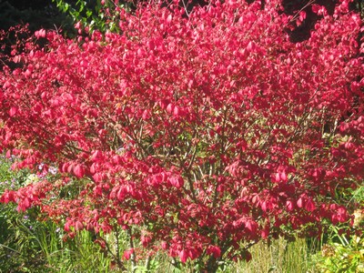 Burning Bush. The first to redden its leaves. And the least apologetic.
