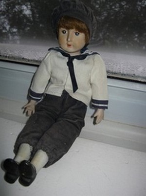 And so as I get rid, I thought I’d commemorate the debris that has no real meaning but is mysteriously difficult to part with—like a peculiar little boy doll in navy breeches that I bought during the 80’s. Can’t remember from where or even why, yet every time I try to pitch this unnamed thing that I have no special fondness for, I can’t. (The best I’ve done is getting him into a bag for the Sally Ann once. I dropped it off, drove away, then a kilometre or two later I turned around, went back, opened the bag, fetched him out and drove us back home.) Not sure what this means. But it’s very bloody weird, no?