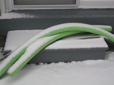 1. Are those floatation noodles (or whatever you call them) that you take swimming? If so, why are they outside in the snow? Were they left out there all winter? I think it would have been funny to wrap one around a snowman, maybe stick a snorkel on him too.