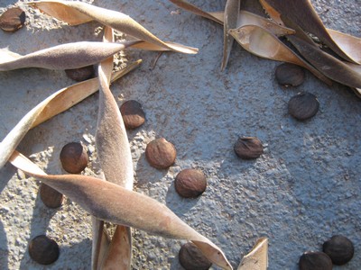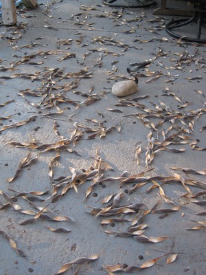 The cacophony of cracking continued for a couple of days. And while the sound initially unsettled the people something wicked, they soon realized—around hour 42—what was happening. The pods, it seems, dry into sticks over winter, then twist open—that was the cracking—each releasing four or five penny-sized seeds. That was the pinging against the window.