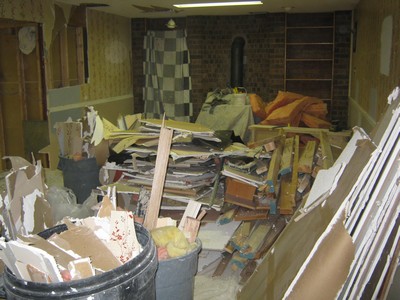 The reno, the inspiration for this, The Year of the Big De-Clutter, has begun in earnest. In the basement, more precisely. Yesterday they ripped out walls. Today they’re cutting cement.