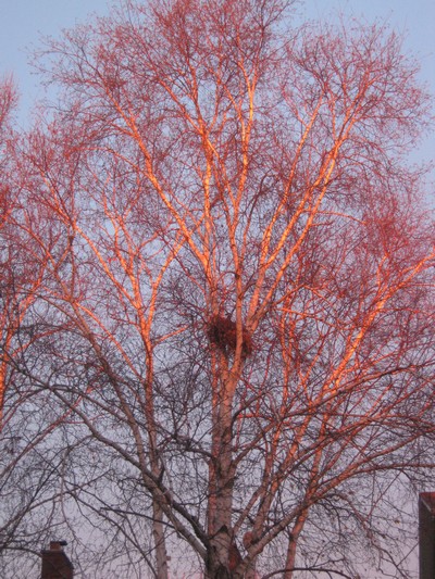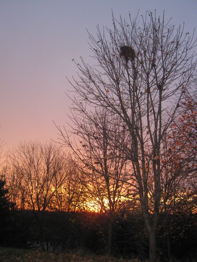 1. Lovely photos. It’s a spectacular time of day for photography. You’ve caught the mood. I can feel the air quality. Strangely enough I was at my daughter’s house in the country today and photographed a bird’s nest that I hadn’t seen when the leaves were on the tree. I was reminded of it by the exposure of the squirrels’ nest in your photo.