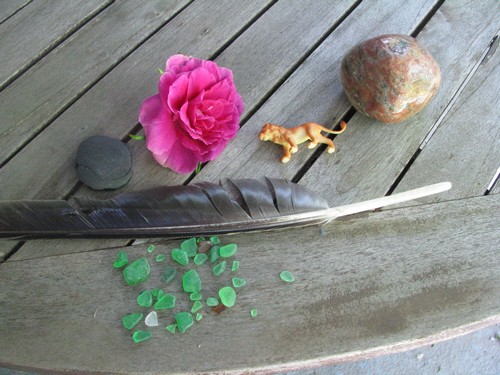 I collect beach glass, more than I’ve ever collected in one day. Mostly green but a couple of browns and a nice sized clear. Most are tiny, but it doesn’t matter. That my eye finds them is what counts. I’m grateful whenever I can see what’s right in front of me.