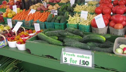 A few weeks ago I went to our local outdoor market. I told the owner I was a member of the local camera club and asked if it would be alright for me to take a few photos. He was very reluctant (perhaps thinking I was photographing his prices to show them to a competitor). I compromised and told him I’d take photos from the outside, no close ups. He agreed, but watched me the for the moments I took 2 pictures. (I’d bought produce so it wasn’t like I was riding a freebie).