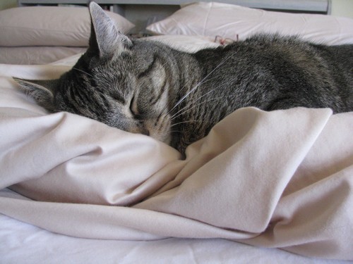 —  a cat snuggled up beside me like a teddy bear