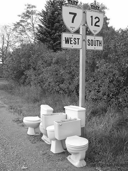 No set up. No renovation either! Actually saw this on the side of a very busy, non-residential, secondary highway. Someone with a pick-up truck and warped sense of humour… Or just providing road-side convenience?