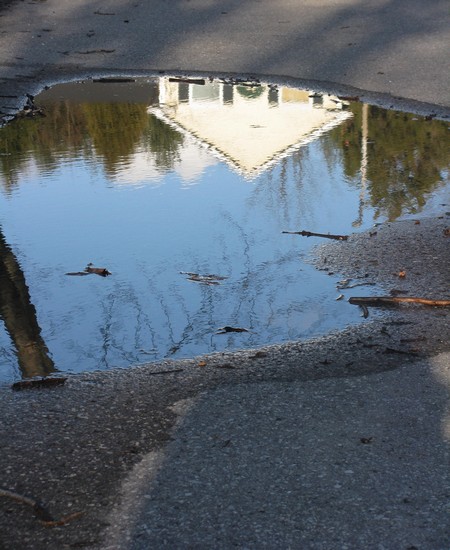 1. Yes, and that particular puddle, when frozen, nearly had me on my backside more than once as I came around the corner!