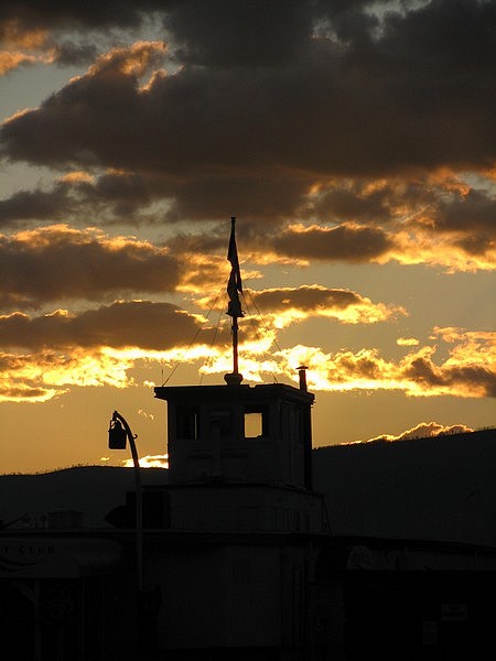 Barbara, this shot was taken on the stretch of water near The Cove in Kelowna. Do you know it? That part of the lake used to be home to a fleet of houseboats not too long ago but on our last visit we noticed they’d gone. [All of them, I think, but not sure.] I remember there’d been some furor about them in the community. So this may not actually be a houseboat after all (so dark even I can hardly tell) but a sort of lighthouse (but not a lighthouse) thingy on the shore. I’ll admit I took the shot rather randomly and the silhouette and sky were more interesting to me than the ‘structure’. Anyway, if you happen to know that stretch of road/water, you may recognize this. I realize you’re in Penticton… but worth asking!