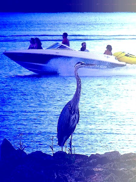 1. The contrast in that photo is interesting- the bird seems so serene next to the speed boat. Did he get spooked immediately after you took the photo?