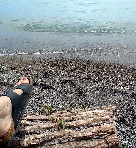 Just then two more women, up on the boardwalk this time, an elderly one in a wheelchair and another, younger, pushing. The younger smiles, maybe thinking how lovely this choice of venue but the one being pushed looks sad and I wonder if this is, in fact, the worst possible venue because it reminds her of all those days and years when she was able to walk barefoot in the water… and then I think: with some things, there’s not always more.