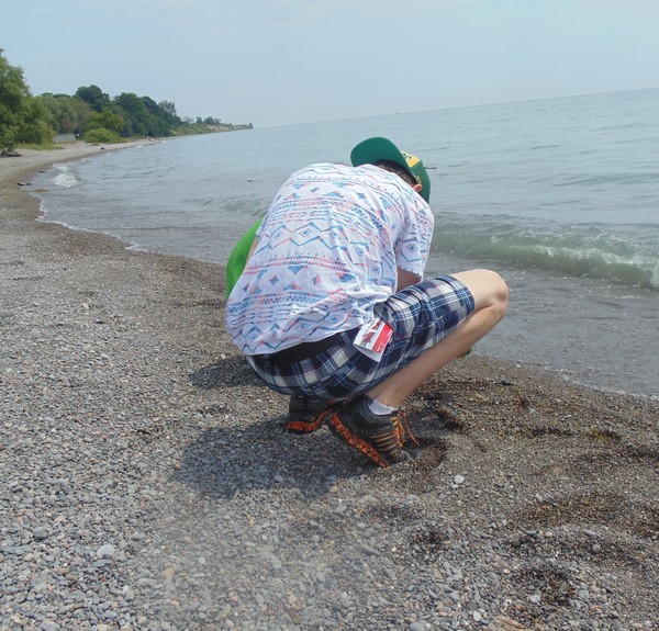 Two boys and a girl named Lily settle down a few feet away and begin digging among the tiny stones at the edge of the water… for beach glass. They shriek when then find some and one of them walks right in front of me and smiles and I smile back but at the same time I send a strongly worded telepathic message that he not even think about digging on my turf. And he doesn’t. Never under-estimate the power of the mind.
