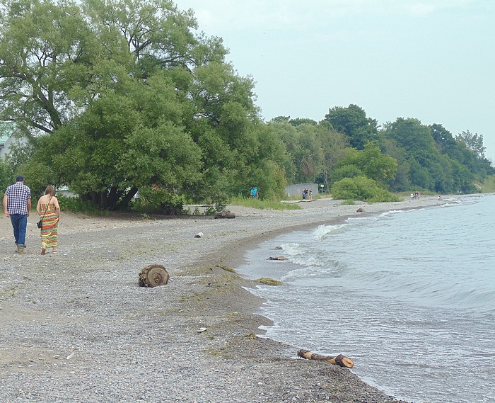 And two women, both in red and white striped tee shirts; one is elderly, the other in her forties maybe, a daughter? They’re collecting something as they walk, reaching down every few moments and picking things up. Beach glass? Are they scooping up ALL the beach glass before I can get any?? I panic a little at the thought and consider racing out in front of them. It occurs to me that in all the hundreds and thousands of times I’ve been here I’ve never once noticed anyone else collecting beach glass. People skip stones and there’s the guy who has a metal detector who showed me the old silver Tiffany locket he found. People carve initials into picnic tables and have BBQs and recently I saw a margarine container filled with really beautiful glass that someone left behind in the playground… but I’ve never seen anyone do the actual collecting.