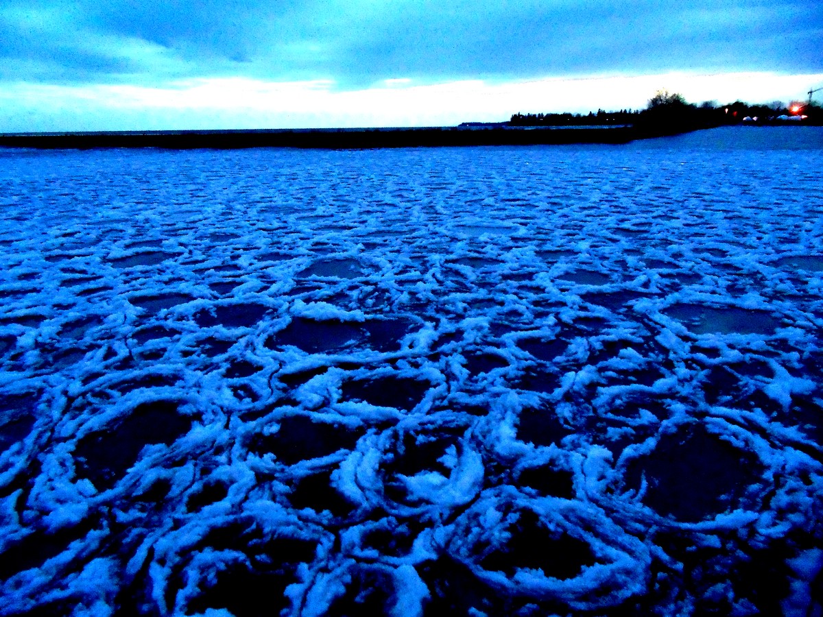 1. The harbour gets frozen and when it breaks up it’s like a floating jigsaw puzzle — the circles are sheets of ice. But you’re right, it’s always a magical thing to come upon.