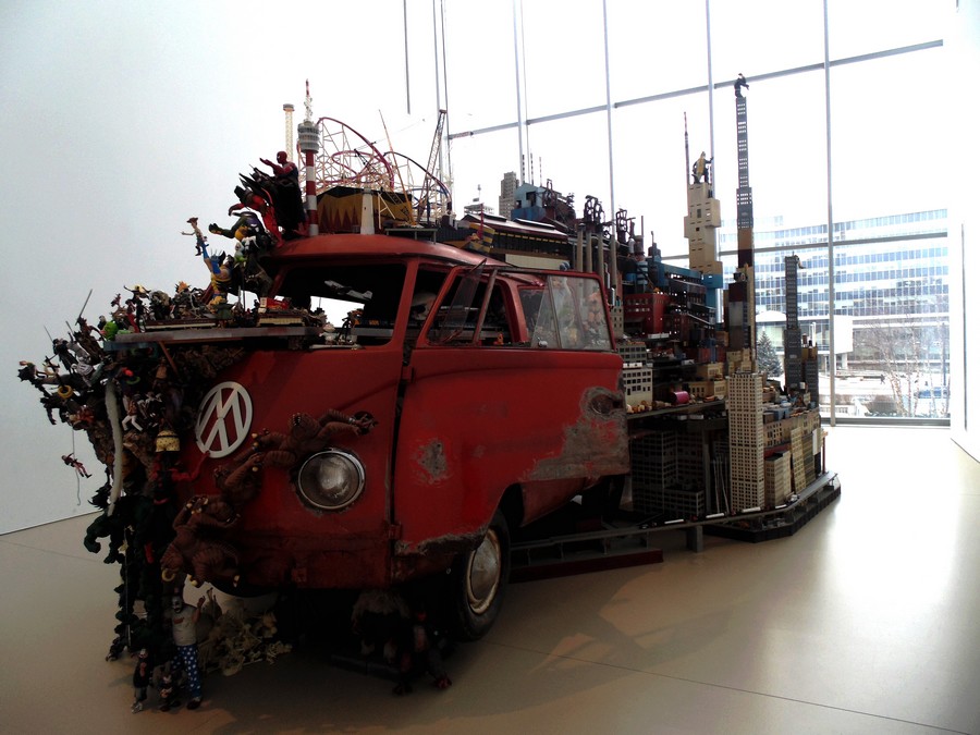 1. This is an installation at the Art Gallery of Hamilton (artist, Kim Adams). It’s called ‘Breugel-Bosch Bus’. I’m more agog than in love with it, though I do like how he’s showed society’s changing values. From love-in mobile to superheroes and commerce run amok. (If you had one of these vehicles, I’m jealous. I would so have loved one. I’d have driven directly to Haight-Ashbury and looked for the groovy happy people with feathers and other assorted flora in their hair. Having taken a tour of H-A since, I realize that what I’d have found was badly infected bare feet and overdoses. Maybe better that we had an Oldsmobile.) (: