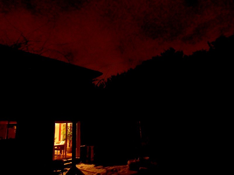 That deep red sky is so striking — at first otherworldly and ominous, but then the eye is drawn down toward the welcoming light from the room and all is okay again. Love the mood of this one, and the heavy contrast. That sky really is incredible. So you were in Argentina, not Chile, when the earthquake struck?