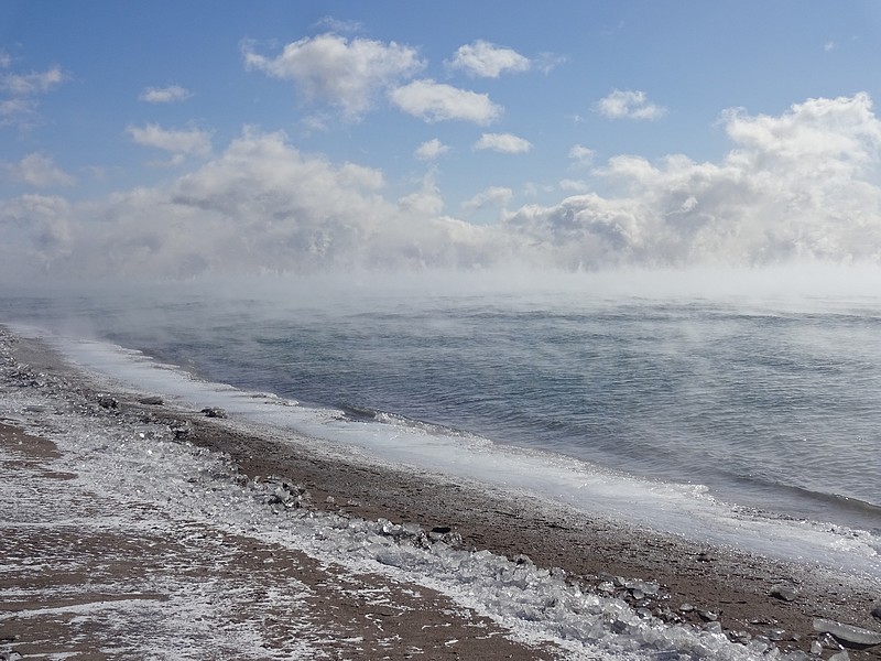 So here I am on an empty beach crouched down on this minus thirty-something day, taking pictures of the steam rising off Lake Ontario…
