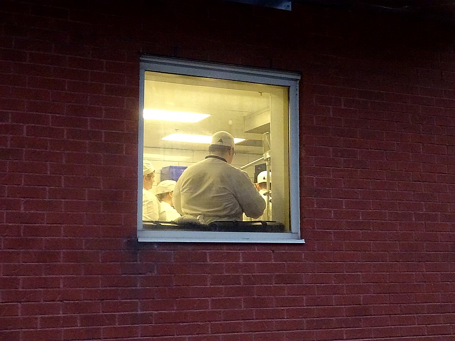1. Not hard or even sneaky at all. Was parking my car and I looked up. Voila! I was heading to a dinner and thrilled to have a glimpse of what looks like the Chef’s briefing to the cooks before all systems are go! (Notice the sweat on the back of the cook’s jacket. I have such admiration for this work.)