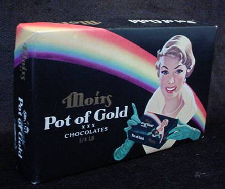 What it seems Robertson has done is create his own version of Spoon River Anthology,  by Edgar Lee Masters, a book that uses poetry to chronicle the lives of residents in a small town. Tom is introduced to the book by the friend of his older sister (and I’m introduced to the book by Robertson’s book, by this  book). The process feels a little like what’s known as the Droste effect, where the image you’re looking at is holding the image of what you’re looking at and so on. Like the old Pot of Gold chocolates cover.