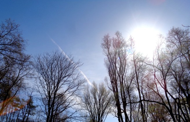 But the only person I see is a guy standing at the creek, facing the morning sun, just standing there, and then he raises his arms in salutation.