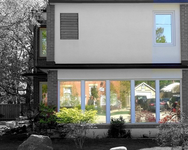 Oh my, I can’t tell you how much I love this! The reflections are magical – showcasing different building styles in such a creative way and I do love the lines on the featured house, and the cherry blossoms softening from the left. This really does something to me Carin.