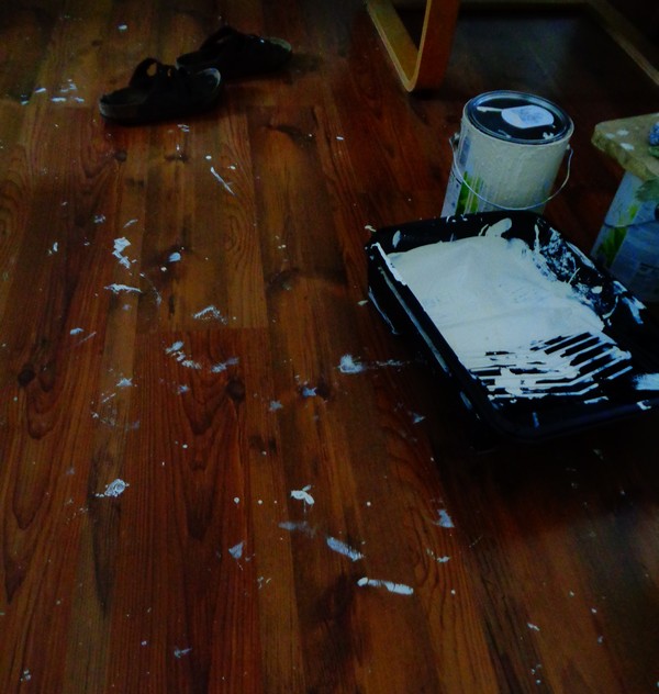 Oh, and I should say that the floor photographs very nicely, but it’s actually laminate, a thousand years old and ready to be replaced next month. Which is why I was so cavalier with the painting. In fact I would never have even dared paint a room on my own if the floor wasn’t about to be taken up. I think the pictures pretty much explain why, haha!