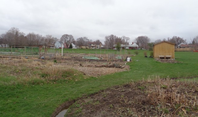 What a great community garden. “Beans and tomatoes instead of bombs.”