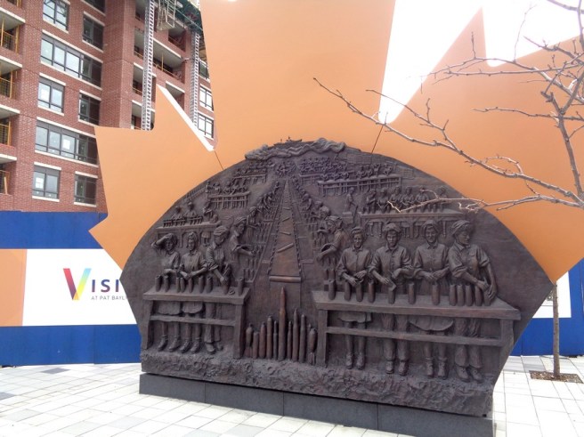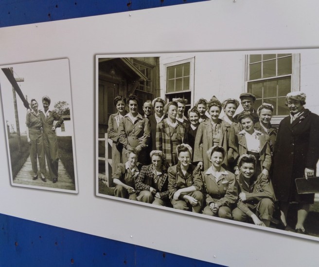 This year my Jane’s Walk was through a slice of Ajax , which wasn’t even established as a town until 1941, and then only by accident when a company set up shop in what was a field to make bombs for WWII. They made millions apparently… (40 million). And it was women from across Canada who made them. They arrived on trains from the west and the east and lived in dormitories built expressly for them (surrounded by 8′ walls and barbed wire).