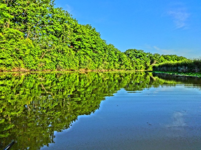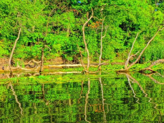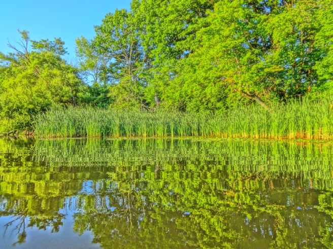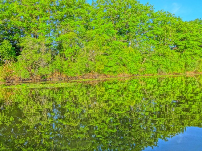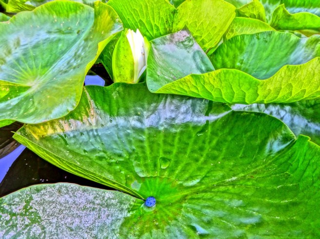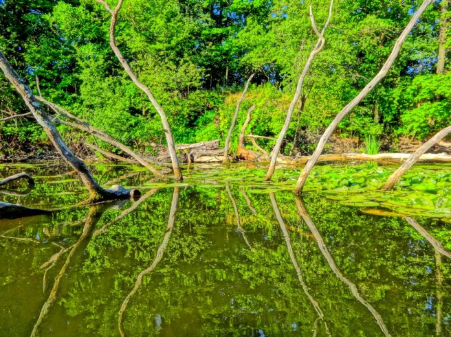 I brought stillness and found the water rippling with invisible insects, fish jumping, bubbles on the surface in the form of a heart. I found the electric blue green of a dragonfly and the white wings of a tern.