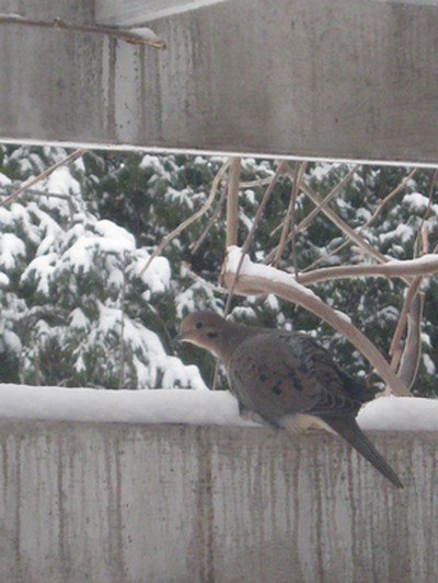 Feathers. In the backyard this morning. Always makes me sad. Dove. I’m not sure if it was neighbourhood stray or hawk; there was a hawk hanging around in the trees the other day. Do they eat doves? I wonder if it was a descendent of Orville and Wilbur, the two that were born in our wisteria who took their first wonky, tentative, zig-zaggy flight across our garden as we sat on the patio and watched. They lived among the spruce here for years. It’s always a mistake to name them.