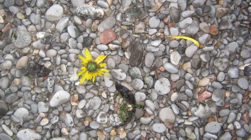 and you pry it loose and it’s cold and you’re not wearing gloves so you move it from one hand to the other until you get to the big rock and en route you see a daisy but you have no hands to take a picture so you decide you’ll do that on the way back