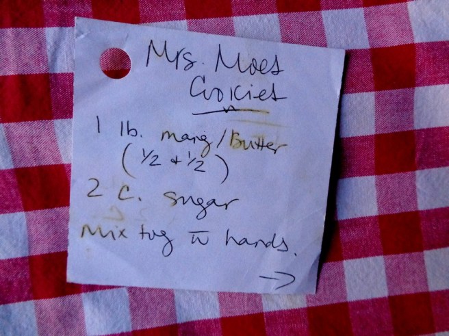 Years and years later, in your twenties, you asked Mrs. Moes for the recipe for “those cookies that day” and she knew exactly what you meant and she recited the recipe to you right there as you scribbled down what she said.