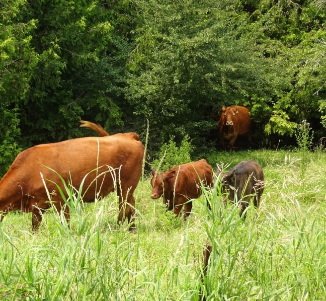 Take the Lakeshore Road east along the shoreline and through the countryside and past a field of cows that apparently live in the forest.