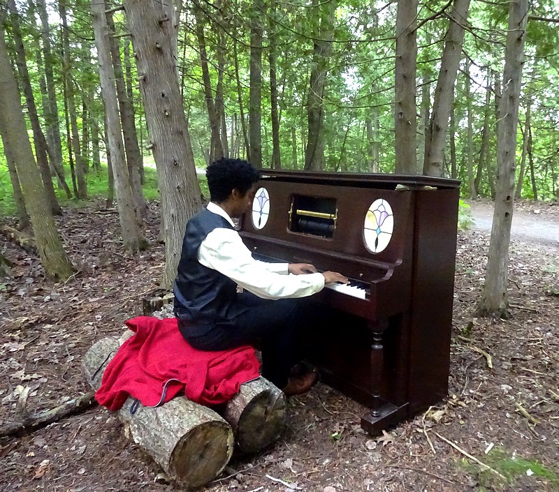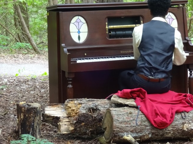 Next day,  cross a suspension bridge into the woods and find a pianist playing birdsong at almost-dawn.