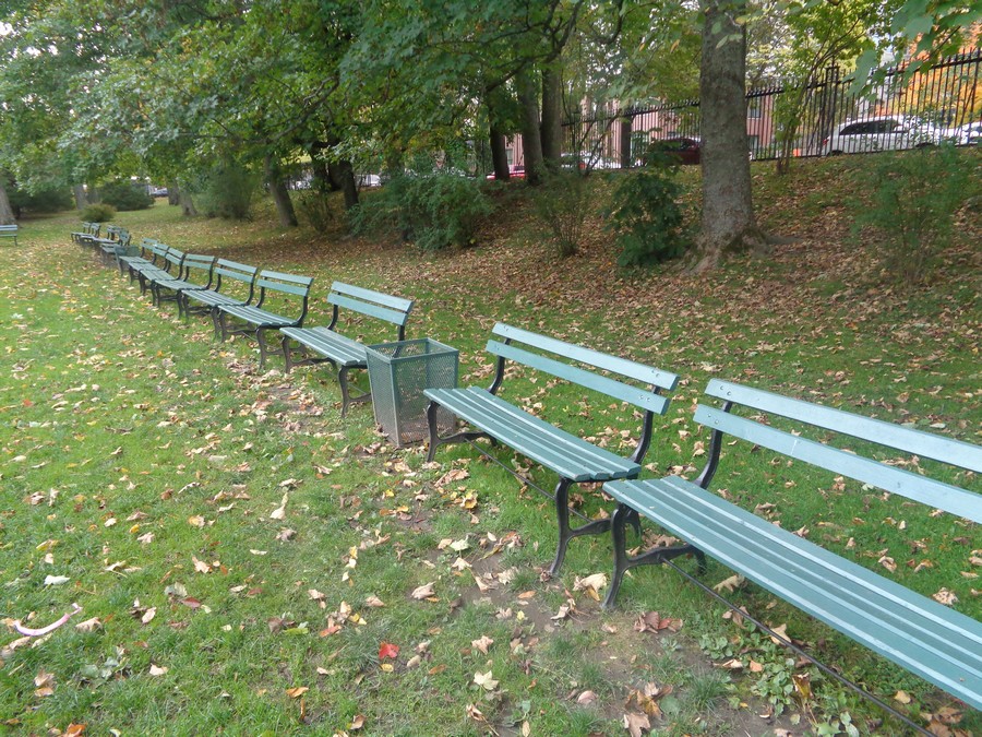 Notice the extraordinary number of garbage cans in almost every conceivable space. (Regret not counting them.) And the corresponding lack of litter. Realize that you have never seen such generosity displayed (of the waste receptacle variety). There is even an off-stage area for garbage-cans-in-waiting, presumably in case any of the regulars get injured in some way.