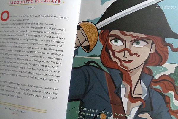 The book is alphabetical and I’m only at the E’s so, really, I shouldn’t go on, except that I will because from E to Z there are activists, politicians, Florence Nightingale, Frida Kahlo, computer scientists (one of whom was crucial to the success of the moon landing in 1969), a couple of pirates and a sailor, Harriet Tubman, Helen Keller, war heroes, writers and astronomers, Jane Goodall, Empress Jingu of Japan who successfully led an army and who people assumed had magical powers because otherwise how could a woman successfully lead an army?, Joan Jett, Julia Child.