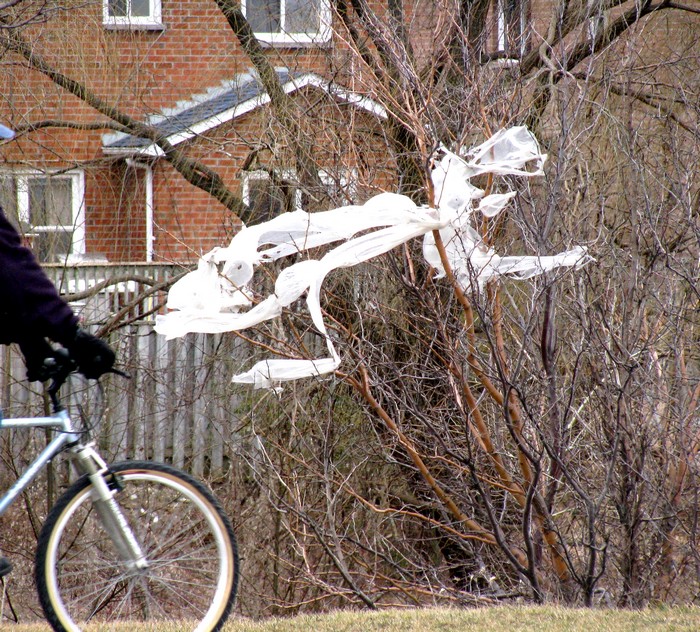 For a while the only bit of colour I find is dog poop bags and I wonder (and I’m forever wondering this) what’s the point of bagging poop if you’re just going to leave it hanging on a fence or tossed under a tree or someplace you think is out of sight? (Not a rhetorical question.)