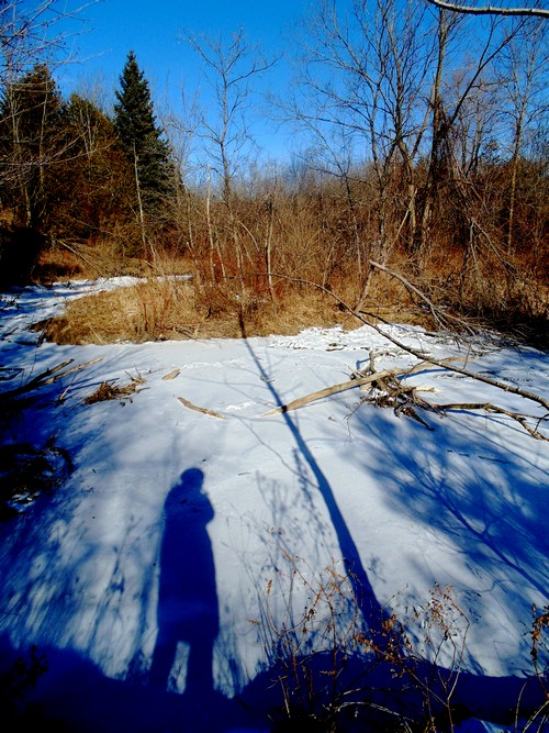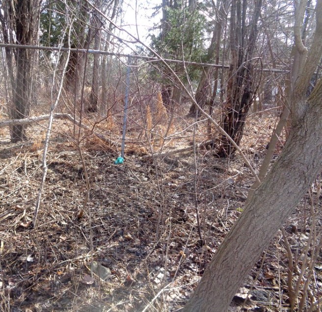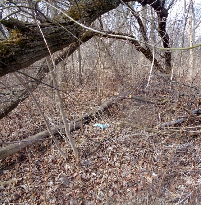 I know where to look for coltsfoot and bloodroot, banks of bluebells and trilliums but those aren’t up yet. It’s mostly very brown and then a sweet surprise among the scruff, a different kind of sign, one that indicates I’m not alone in my thoughts.