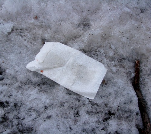 Around the corner, a man in a green ski jacket cleans a ski-doo the exact same shade as his coat. When I stop a few houses down to make some notes, I look back and notice the man staring at me. He’s actually stopped cleaning the ski-doo and looks concerned about me jotting things on a notepad with a pencil. It occurs to me that if I’d stopped to look at my BlackBerry or equivalent [which I don’t own] he’d be feeling much calmer. It reminds me of my experiment at the casino, and the unexpected things that frighten people.