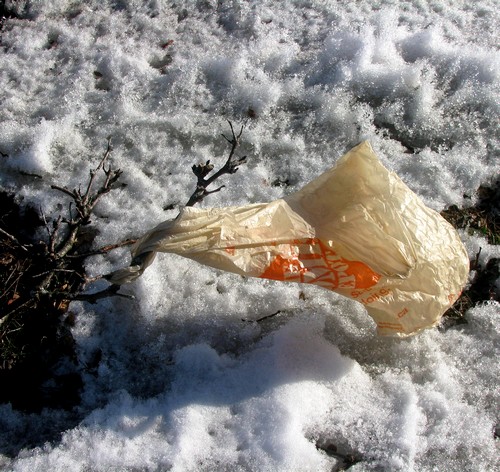 Close to home I find a bag crackling in the wind and so I detach it with the idea of collecting a few bits of the always-debris that is everywhere.