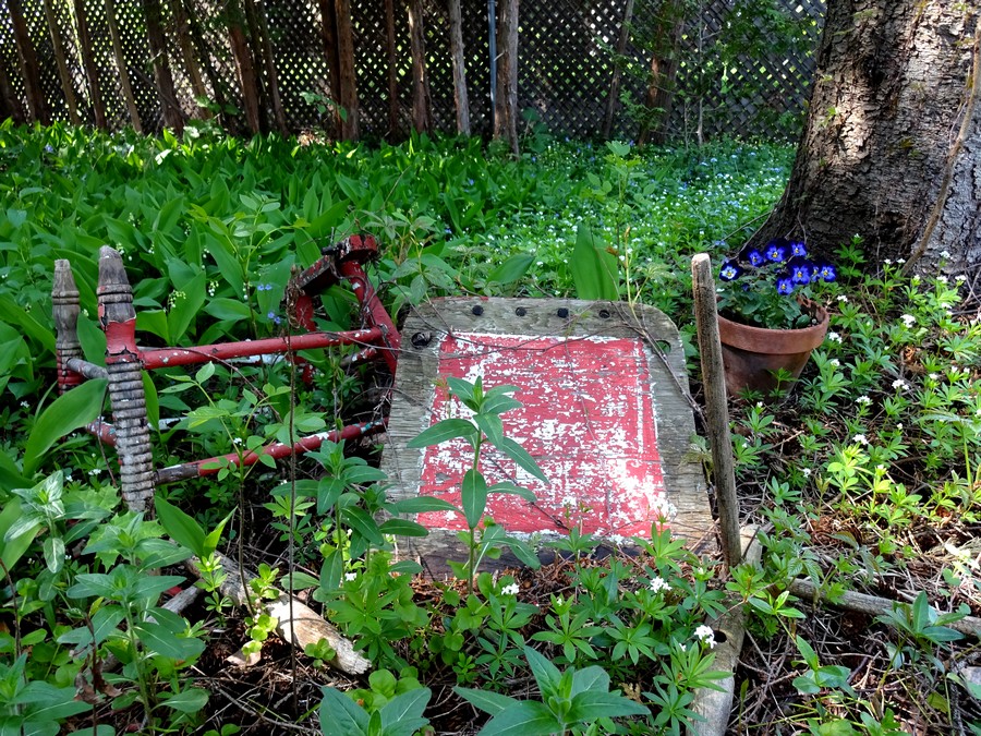 I know where to look for coltsfoot and bloodroot, banks of bluebells and trilliums but those aren’t up yet. It’s mostly very brown and then a sweet surprise among the scruff, a different kind of sign, one that indicates I’m not alone in my thoughts.