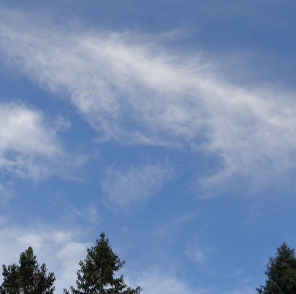 Someone once told me they rarely look up. I was astonished — how can anyone take the whole sky for granted? But it occurs to me that maybe it comes from our habit of looking *for* something… something useful, or unusual, something to compare ourselves with, as in looking at people, or something beautiful, as in a sunrise or sunset or rainbow.