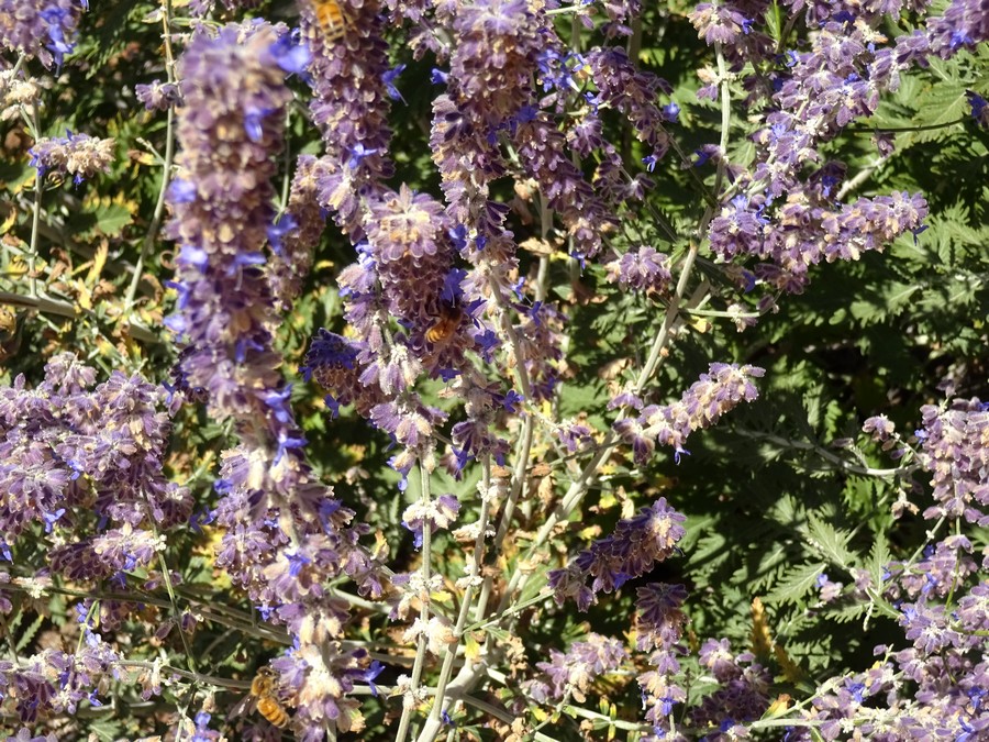 ↑ We head in that direction but, before getting to Timmy’s, we discover another place and wonder why no one mentioned this oasis of deli with ten thousand options for the best snacks ever. AND a patio overlooking a zen garden of smiling bees and giant purple sage.