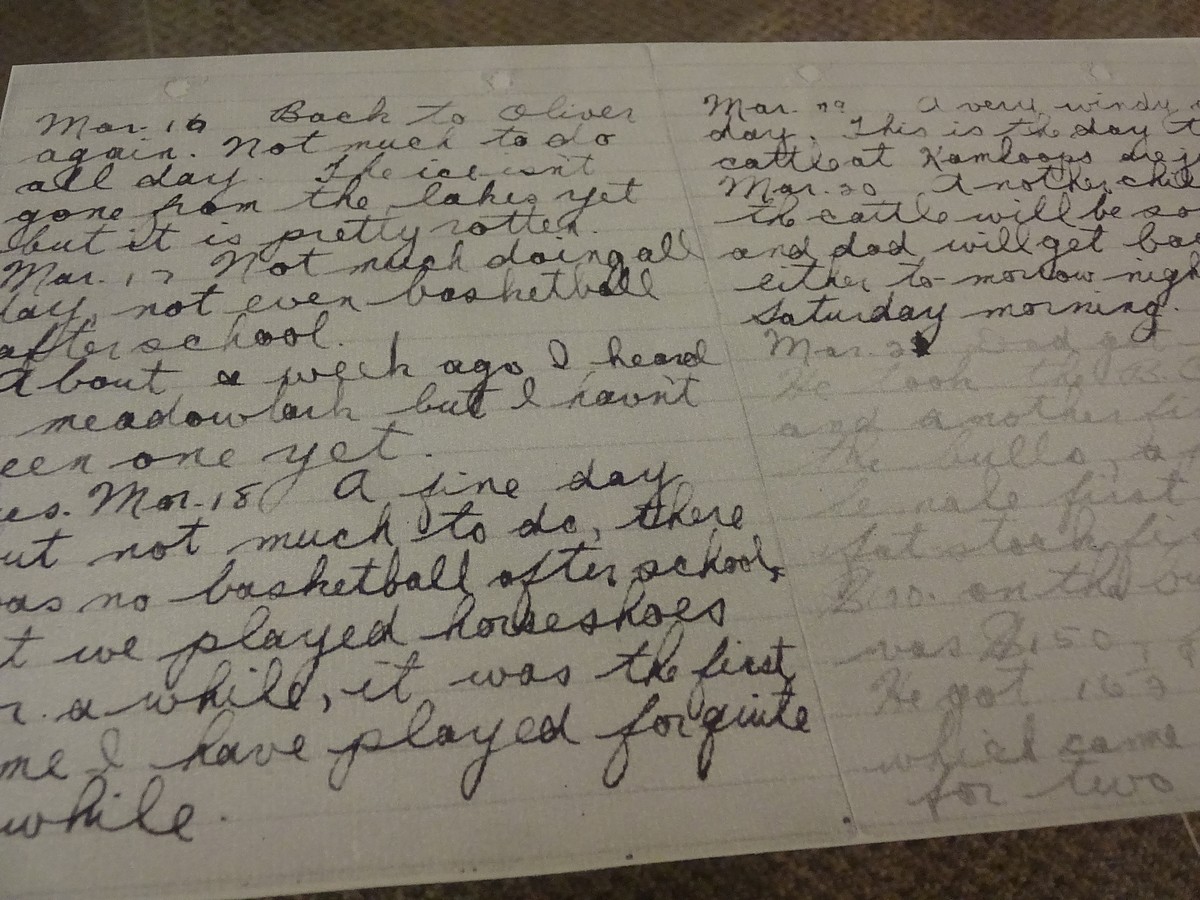 ↑ In the same town I find a small museum which is really just some pioneery things in an old house. My favourite thing is an old journal from the area that reads: “March 16th … Not much to do all day… March 17th… Not much doing all day, not even basketball after school… About a week ago I heard a meadowlark but haven’t heard one since… March 18th… A fine day but not much to do…”