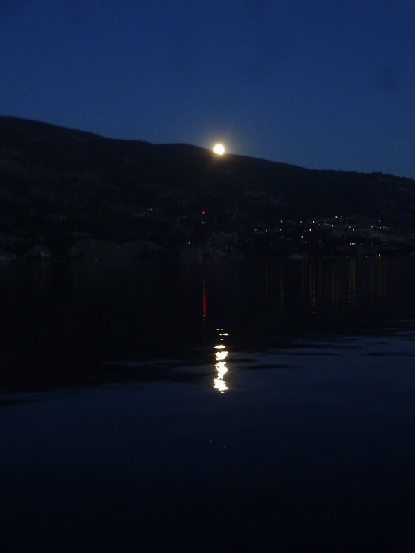 ↑ It’s also clear and sandy bottomed and shallow and the sun comes up over the hills that surround it. And the moon too. I swim every day.