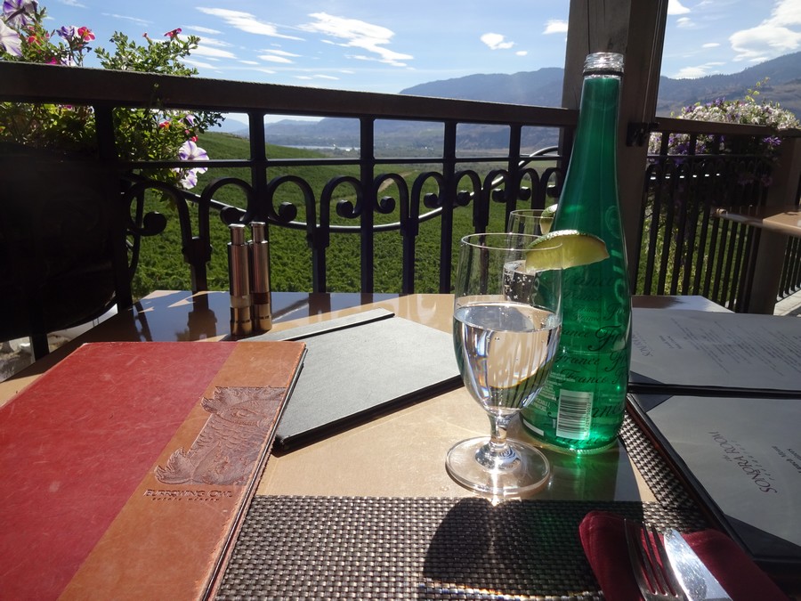 ↓ We go to lunch at a swanky place but the sun is so hot on the patio….