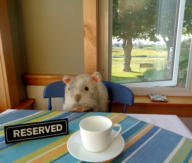 The woman whose yard is full of crazy objects, tea cups hanging from branches, giant wooden playing cards nailed over three sides of fencing, mirrors, bird feeders, figurines, mobiles, sun catchers, flea market and thrift shop finds… too much!! my brain screams as I wander in and consider wandering out again but just then the woman appears and we talk and her joy changes the scene from something I don’t understand… to one that brings utter contentment and peace as she explains the pleasure it gives her to see it all from her kitchen, or from her place on the couch. She would rather look out the window than watch TV on a rainy day, she says. She puts this stuff out each spring and puts it away again in giant bins each winter. It’s time consuming and possibly a form of madness she laughs, but I shake my head, say it feels more like her form of art. She nods. Then she takes me round to the front to show me a few things I might have missed on my way in.