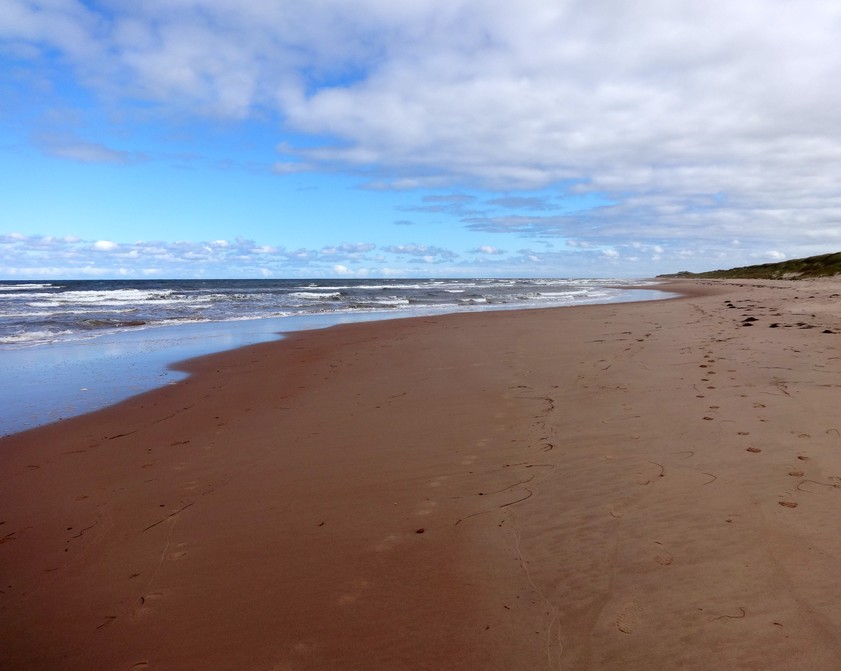 It’s the group of elderly tourists, German maybe?, who arrive at Brackley beach as I’m sitting on the wooden steps, hello, hello, hello, they all say in passing and then take pictures of each other… and how there’s always one in every group that tears away from the herd, seeking a moment of solitude. The way that one plays at the edge of the water and jumps backward with all the joy of a child when the waves roll in as he knew they would.